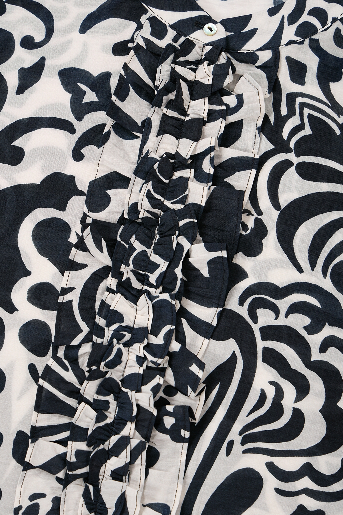 • Durchgehende, berüschte und verdeckte Knopfleiste