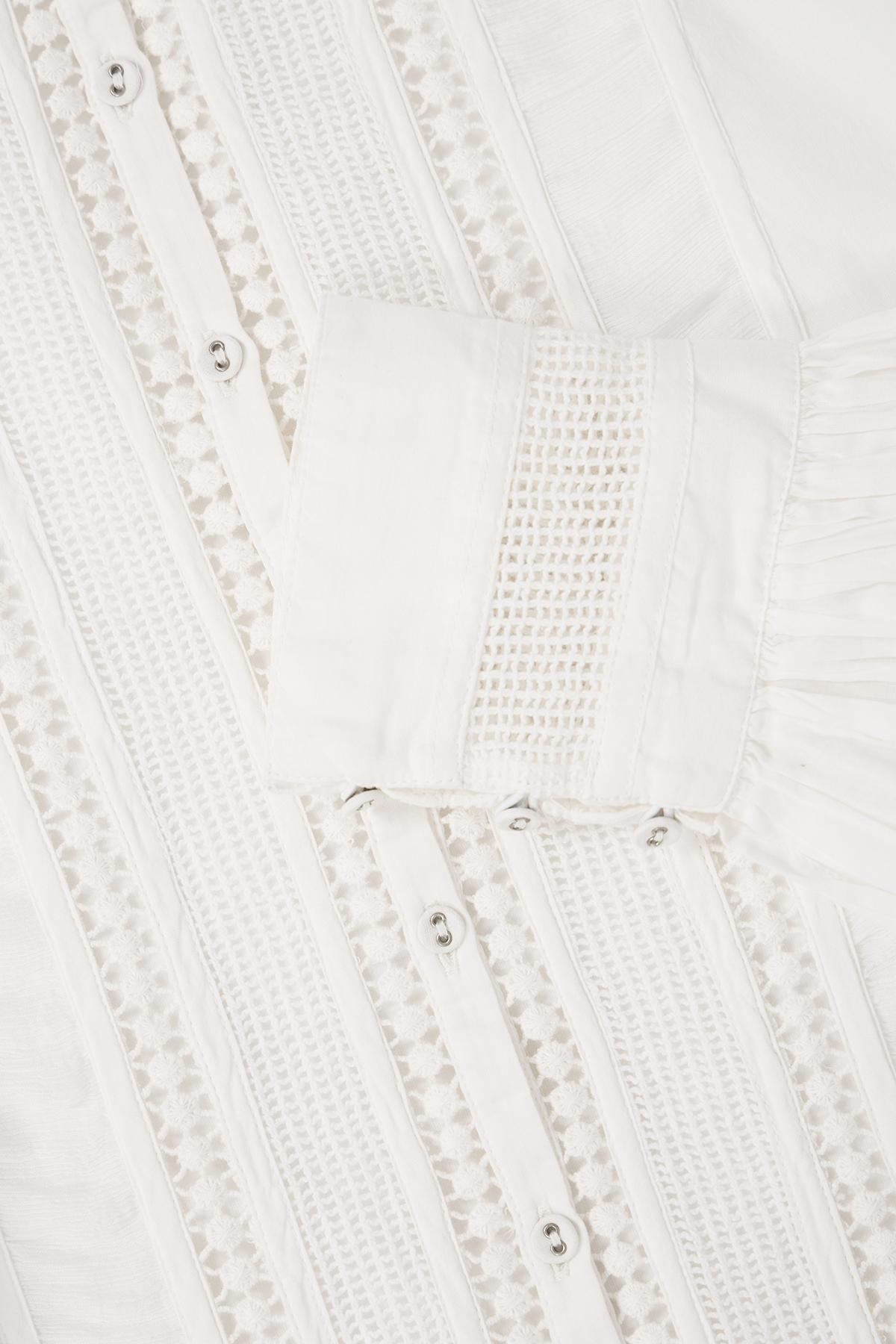 • Bordüren- und Spitzen-Details vorderseitig und an den Manschetten