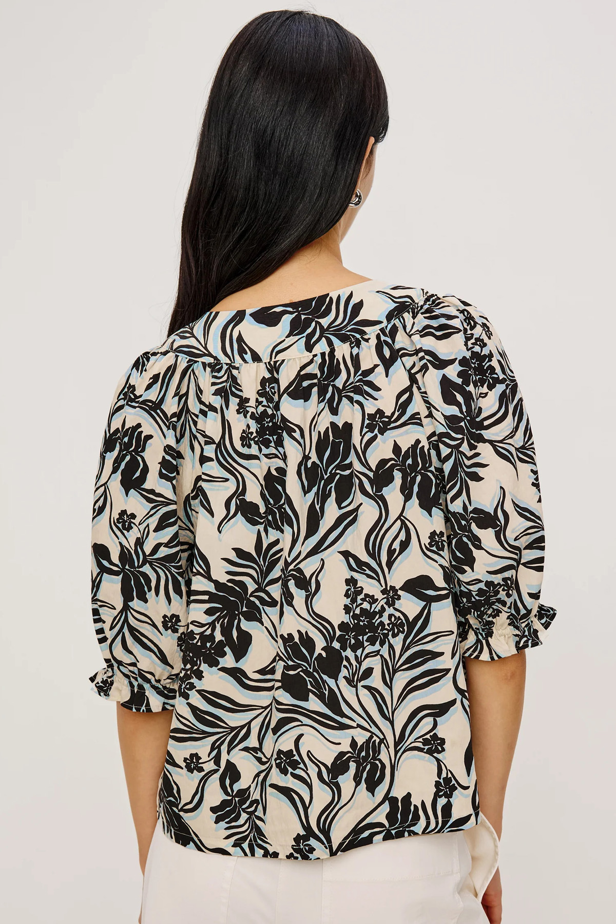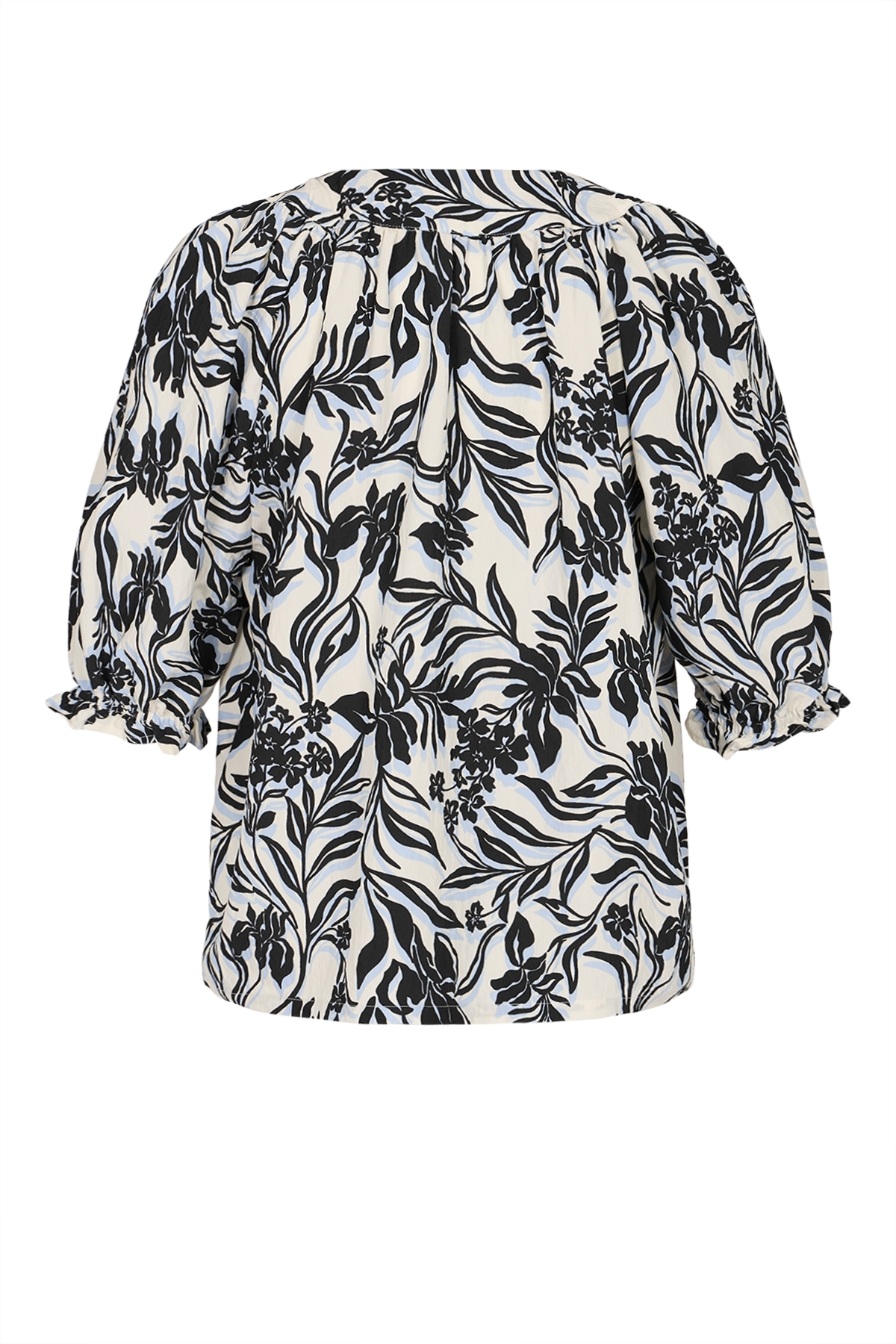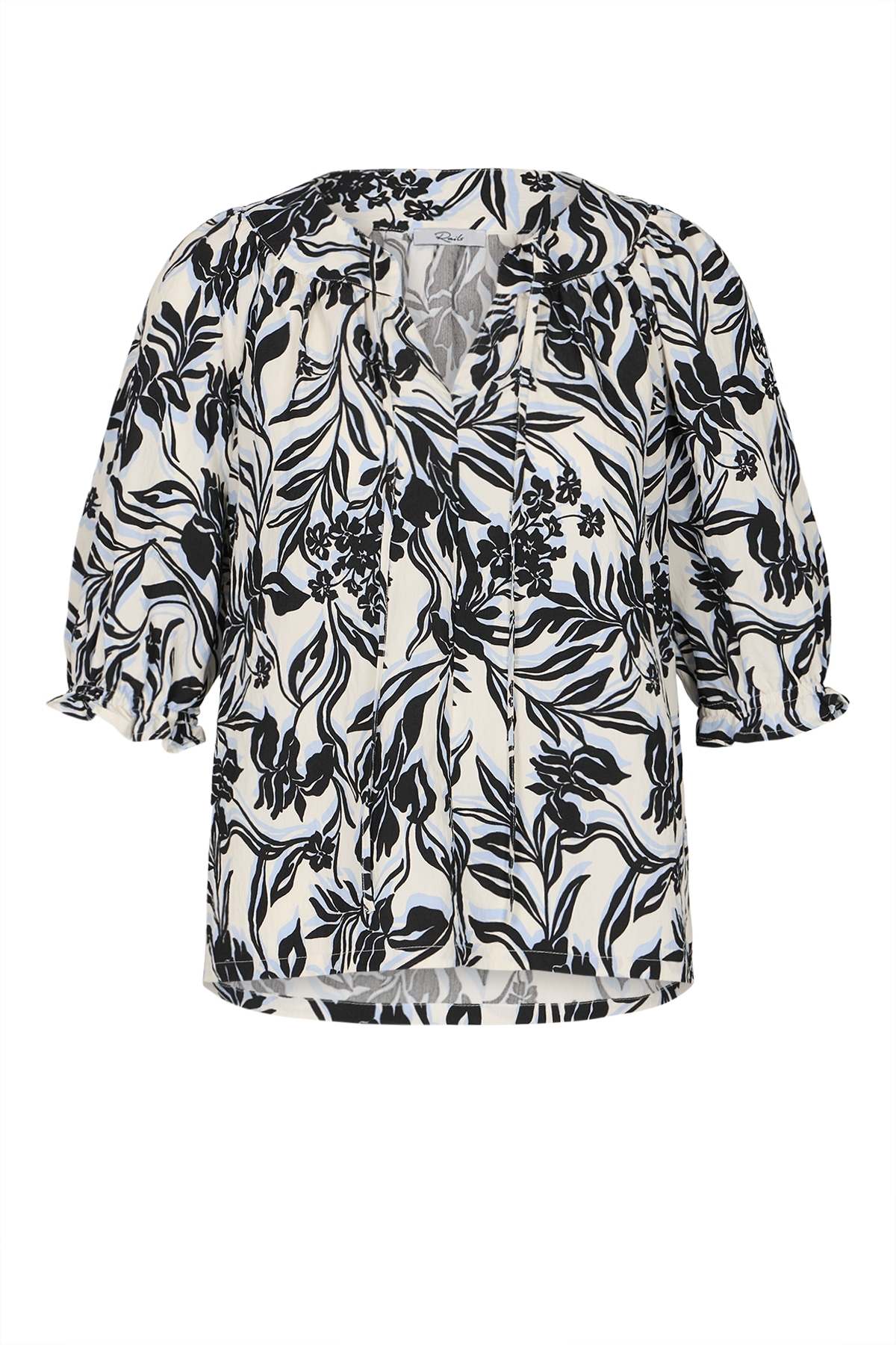 • Halblanger Raglan-Ärmel mit elastischem, berüschtem Abschluss