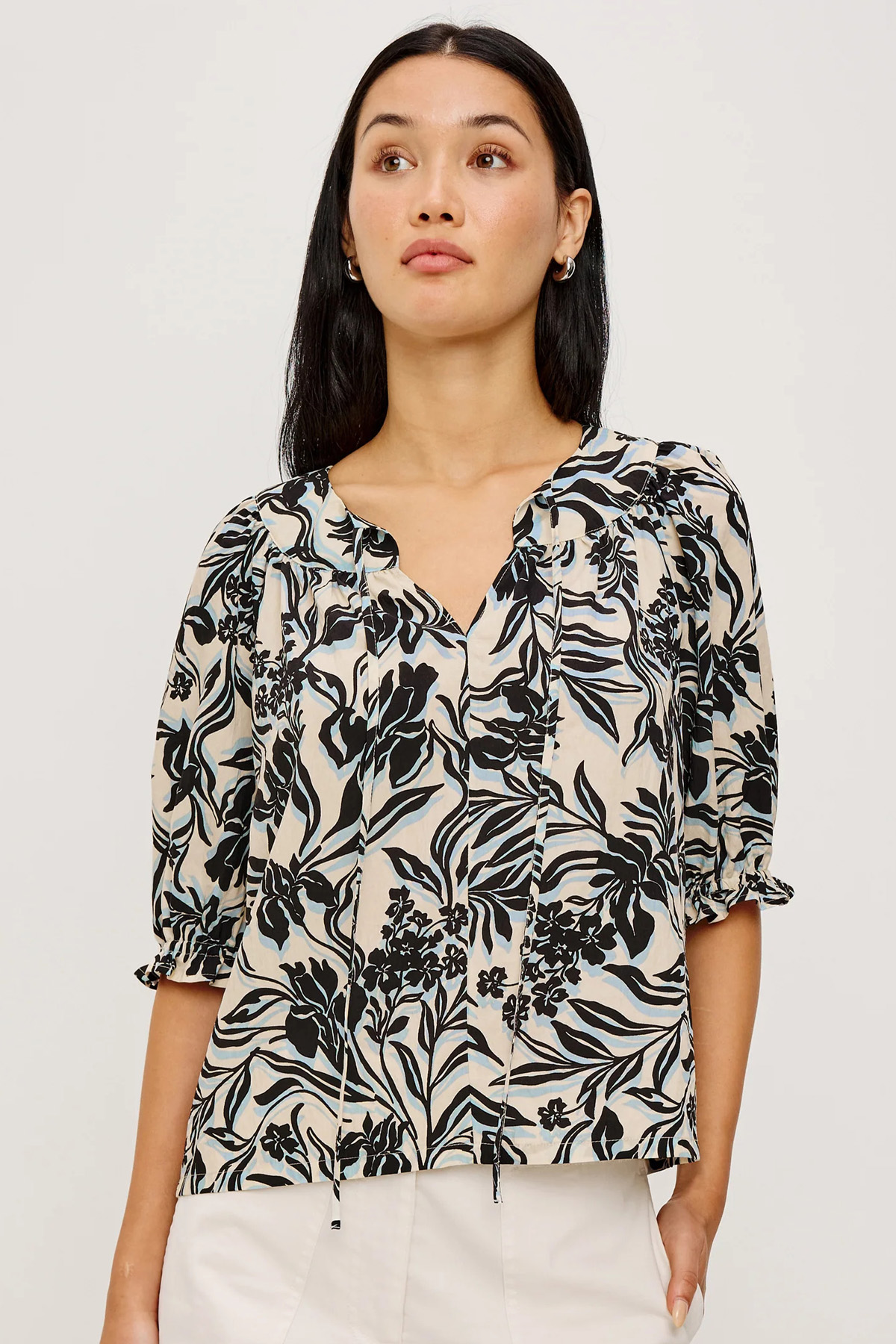 • Tunika-Ausschnitt mit Bindebändchen