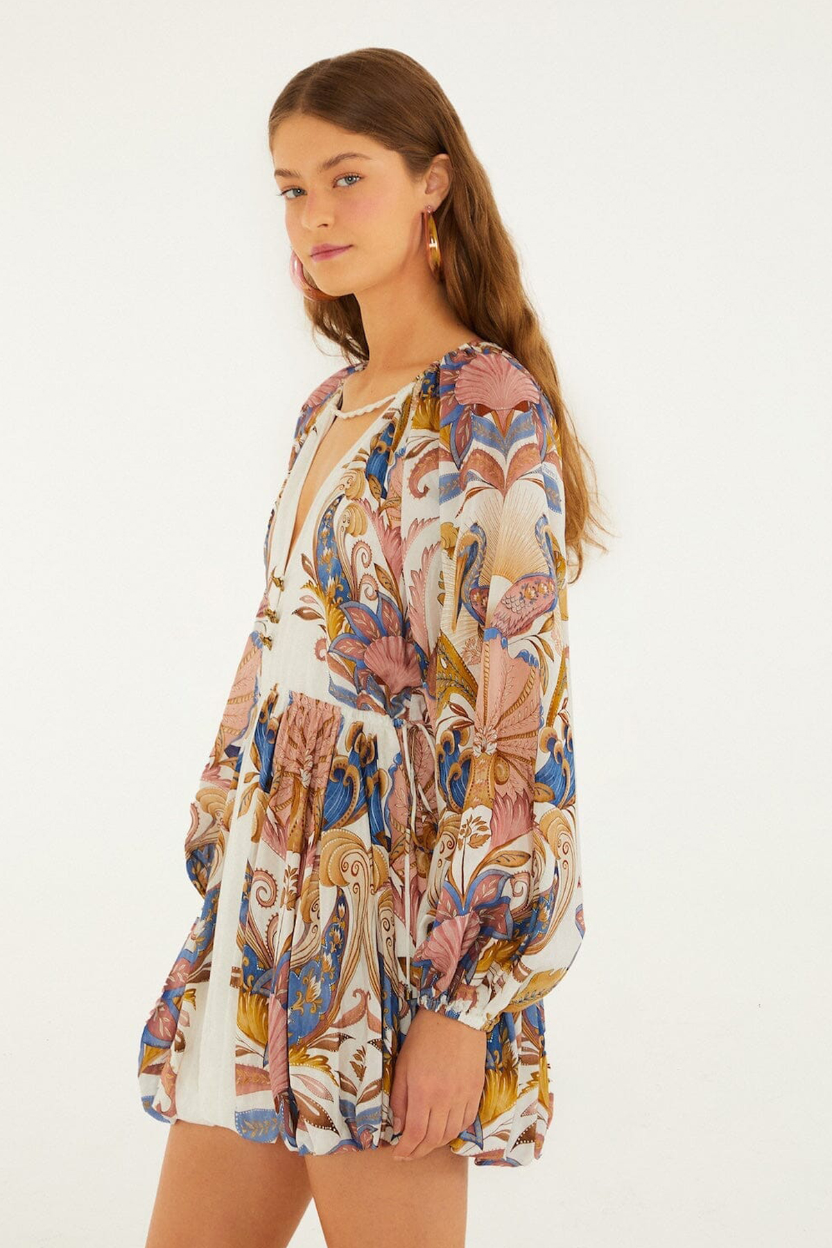 Die Brand Farm Rio ist ein Kollektiv kreativer Menschen aus Rio de Janeiro, die neben dem Entwerfen farbenfroher Womenswear seit über 25 Jahren kulturelle Bewegungen organisiert. Die Geschichte beginnt mit einem Marktstand, den die beiden Freunde und Gründer Kátia Barros und Marcello Bastos 1997 eröffnen. Für ihre farbenfrohen, gemusterten Styles lassen sich die Designer von der Natur sowie deren positiver Energie inspirieren. Außerdem legt Farm Rio besonders großen Wert auf den Umweltschutz. Aus diesem Grund unterstützt die Marke die Wiederaufforstung regionaler Ökosysteme, insbesondere im Amazonas.