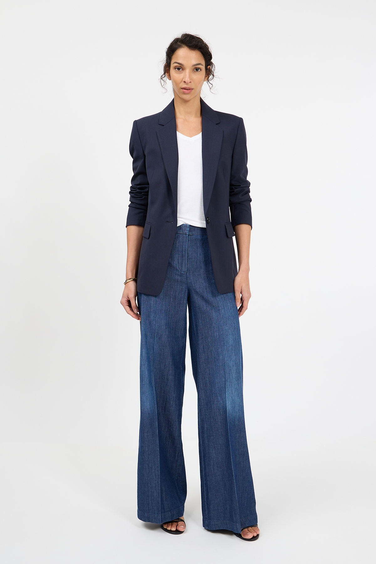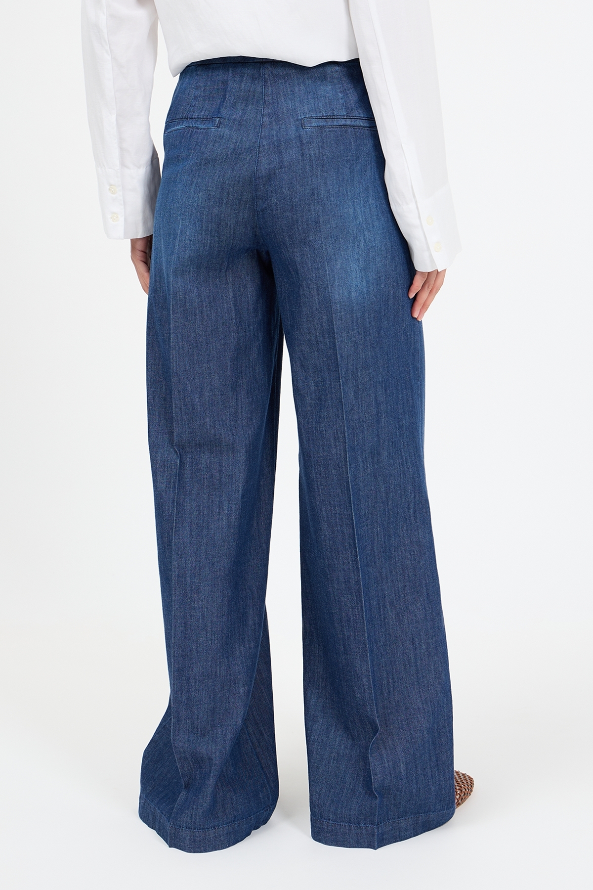• Weites, leicht ausgestelltes Bein