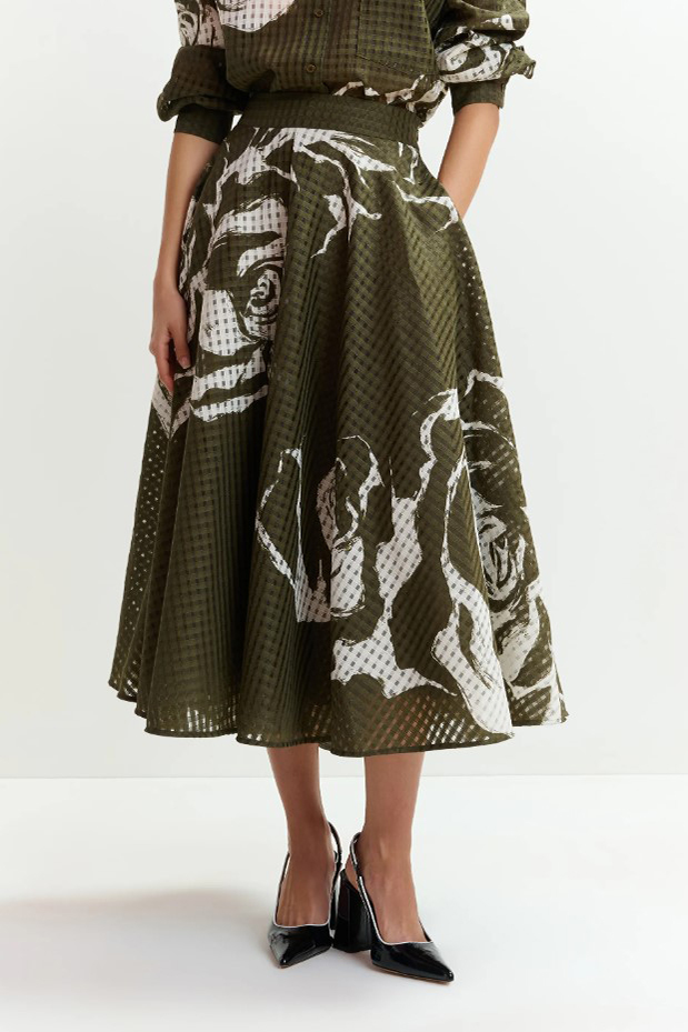 • Rock von Essentiel Antwerp in Oliv/Offwhite gemustert