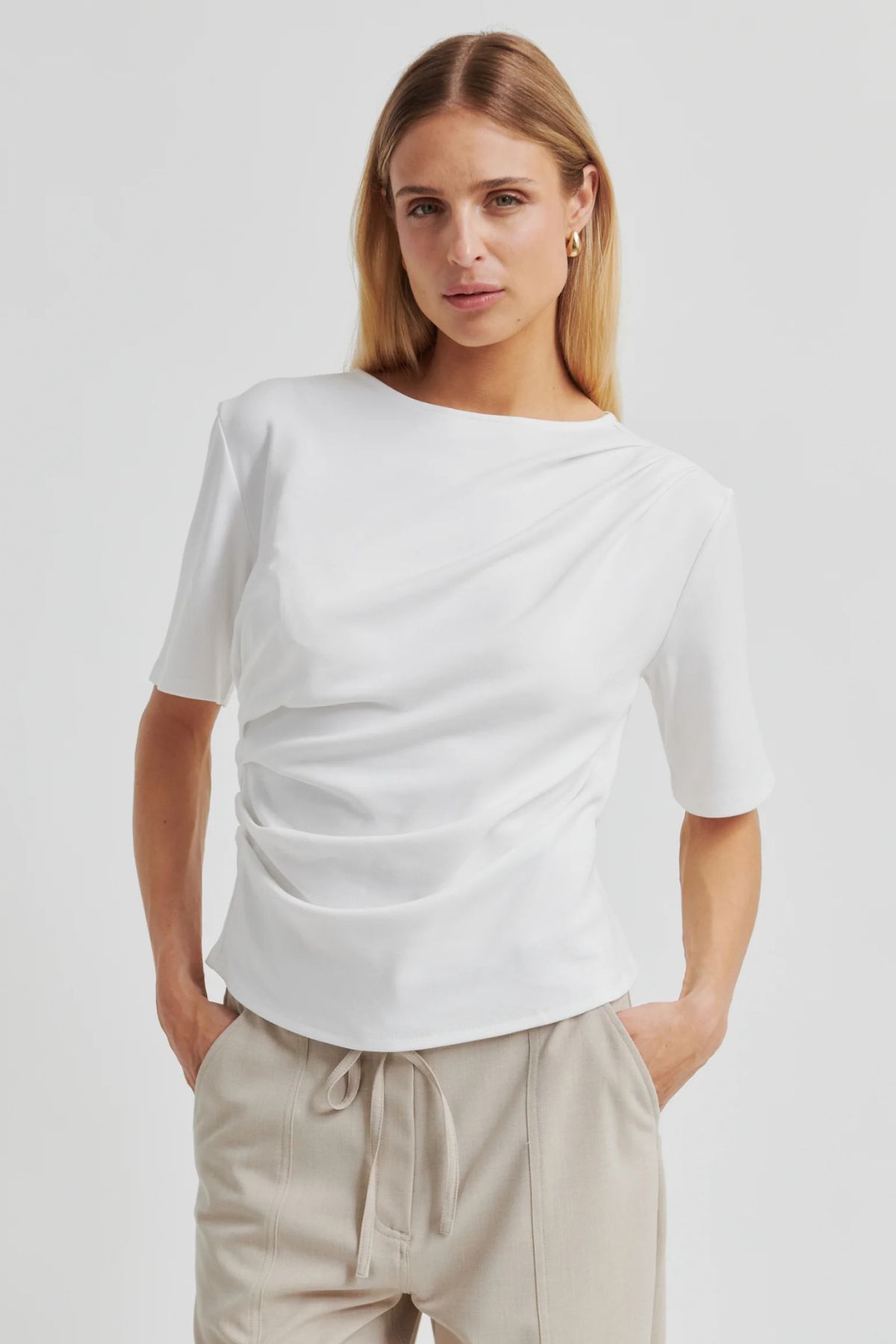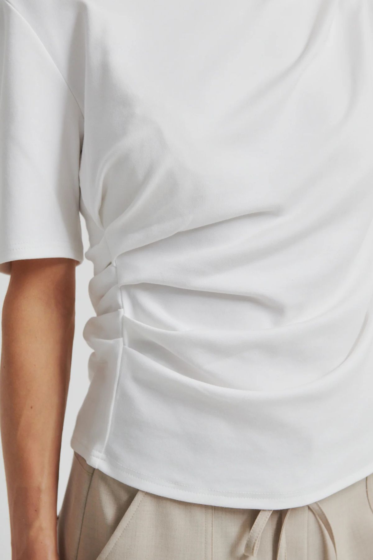 • Falten-Detail an einer Schulter und an der Taille