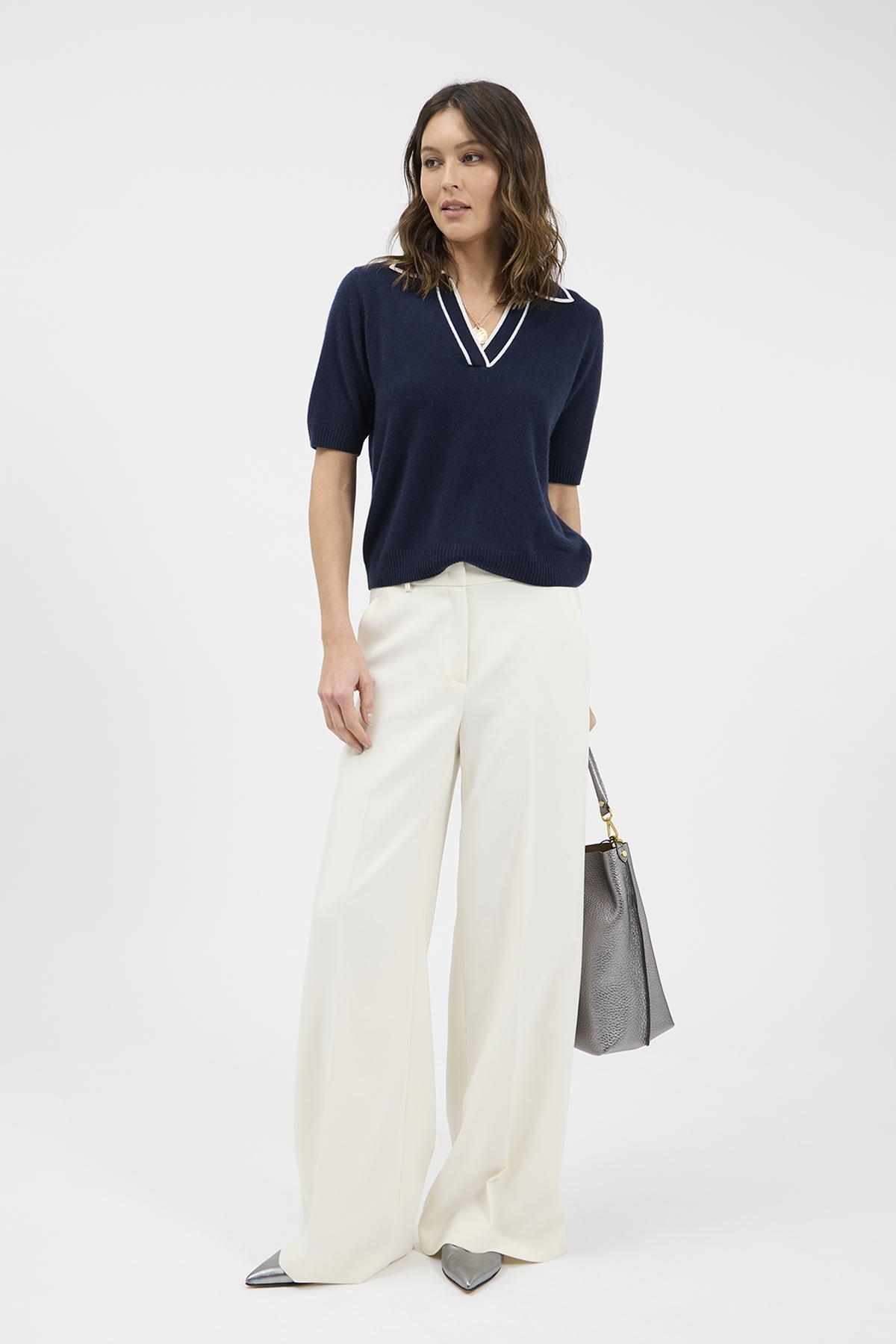 • Polokragen mit farblich abgesetzter Kante