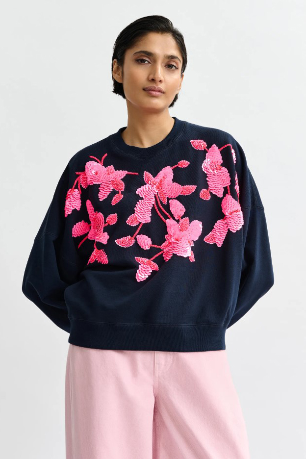 • Üppige Pailletten&Stäbchenperlen-Applikationen in Pink vorderseitig